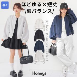 アウター ジャンパー ブルゾン ジャケット はっ水 撥水加工 短め丈 ボリューム袖 無地 ポケット ガーリー レディース Honeys ハニーズ 撥水加工リブブルゾン