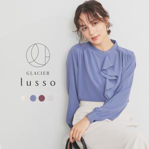 トップス ブラウス 長袖 ラッフルフリル バンドカラー 再生ポリエステル ドビー素材 フロントボタン レディース Honeys ハニーズ ラッフルフリルブラウス