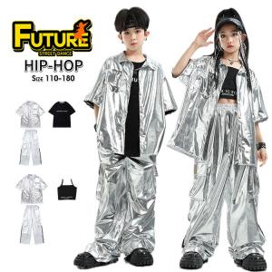 k-pop 衣装 シルバー キッズダンス衣装 セットアップ ヒップホップ コート シルバー キャミソール ロングパンツ 光沢 tシャツ スパンコール k