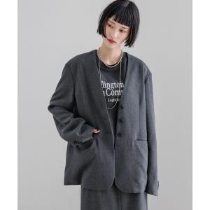 「LOWRYS FARM」 ノーカラージャケット FREE チャコールグレー レディース