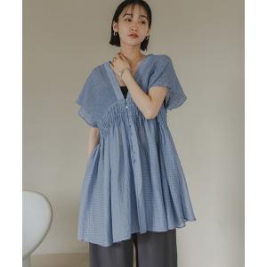 ブラウス シャツ シャーリングチュニックフレンチスリーブ 581468 レディース