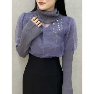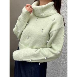 ニット セーター ビジュードロップパールタートルネックニット レディース
