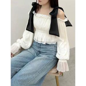 ブラウス シャツ ショルダーリボンオフショルブラウス レディース