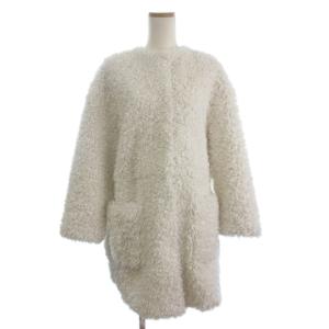 ミラオーウェン Mila Owen 美品 ノーカラーシャツカーブボアコート ミドル丈 プードルボア 白 ホワイト 0 レディース