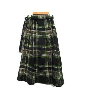 ミラオーウェン Mila Owen ニット フレア スカート ロング ベルト チェック 0 グリーン 緑 /KT28 レディース