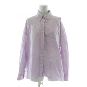 ミラオーウェン Mila Owen シャツ ブラウス 0 紫 パープル ストライプ柄 ボタンダウンカラー 長袖 /PP ■GY61 レディース
