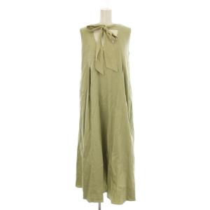 ミラオーウェン Mila Owen ワンピース ロング丈 麻 リネン S 黄緑 ライトグリーン リボンタイ ノースリーブ 無地 /LP ■GY58