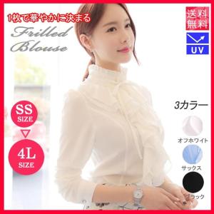 レディス トップス ブラウス リボン フリル 立ち襟 フォーマル 送料無料 白 黒 卒園 卒業 入園 入学 セレモニー 式典 ママスーツ パーティ PTA 婦人会 オフィス