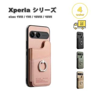 ソニー エクスペリア ケース PUレザー カードスロット リング付き スタンド機能 全4色 SONY Xperia 1VII / 1VI / 10Vll / 10VI 耐衝撃 保護 カバー 送料無料