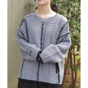 ニット セーター バイカラーステッチニットプルオーバー レディース