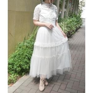 スカート ペチ付フリルチュールスカート