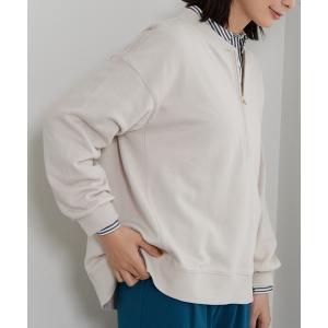 tシャツ リブ使いハーフジップ裏毛プルオーバー レディース