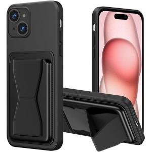 即納 iPhone シリコン カード収納 スタンド機能 折りたたみ ブラック 16/16Pro/16Plus/16ProMax/15/15Pro/15Plus/15ProMax ケース カバー 薄型 軽量 耐衝撃