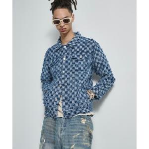 デニムジャケット gジャン Checker Raw Edge Trucker Jacket / チェッカーフリンジトラッカージャケット