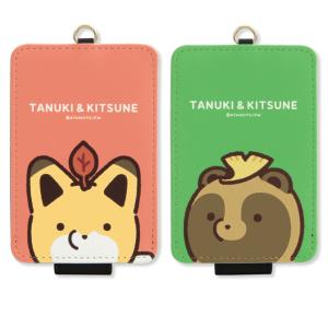 タヌキとキツネ ICカード ケース 定期入れ パスケース ストラップ付 タヌキ キツネ キャラクター グッズ 電車 バス 定期