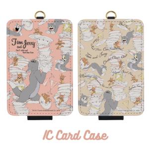 トムとジェリー ICカード ケース 定期入れ パスケース ストラップ付 トム ジェリー ピンク ベージュ キャラクター グッズ 電車 バス 定期