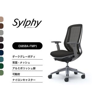 【新色登場】オカムラ シルフィー C685BA メッシュタイプ ハイバック 可動肘 ダークグレーボディ ポリッシュ脚 前傾機能付 ナイロンキャスター