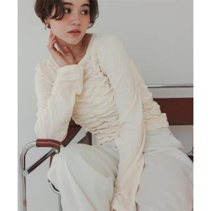 ニット セーター ウールブレンドギャザーフリル襟ニットトップス レディース