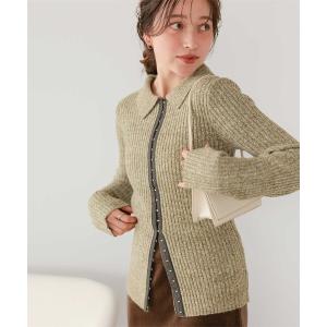 ニット セーター ホック付きポロ襟ミックスニット レディース