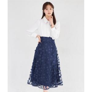 トッコクローゼット tocco closet 立体フラワーモチーフ刺繍シアーフレアスカート