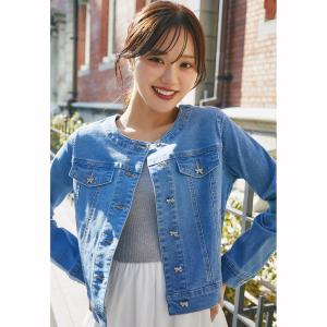 ビジューリボン釦ノーカラーデニムジャケット tocco closet(トッコクローゼット)