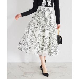 スカート ラインフラワーフロッキーシアータックフレアスカート