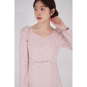 ワンピース 「ZOZO限定」ハートネックウエストリボン装飾ツイードワンピース