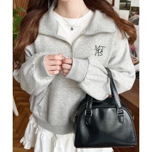 トレーナー スウェット 「累計販売枚数1万枚突破!」裏起毛ワンポイント刺繍ハーフジップスウェット レディース