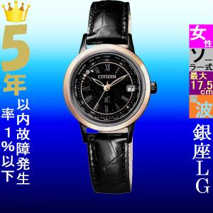 腕時計 レディース シチズン 電波 ソーラー ケース幅25mm クロスシー 革ベルト ローズゴールド/ブラック/ブラック色 CITIZEN 142QEC114426E