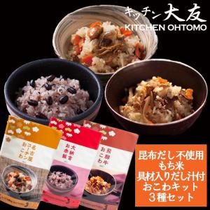 キッチン大友 だし炊きおこわ 3種セット お試し 昆布不使用だし 炊飯器 簡単 長期保存 防災食