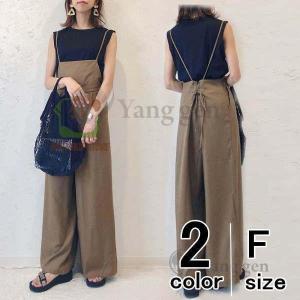 サロペットパンツ レディース オールインワンパンツ キャミサロペ キャミパンツ ワイド シンプル マキシ 楽ちん