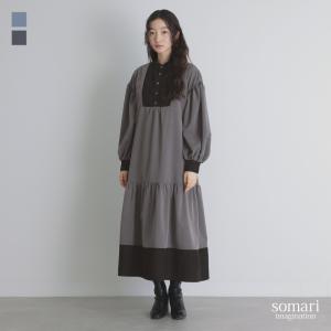【送料無料】ワンピース レディース ワンピ ロング丈 マキシ丈 ロングワンピース ティアード 長袖 配色【メール便不可】【30】