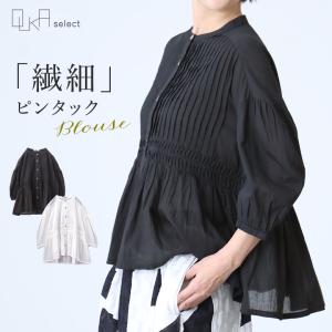 「感謝価格」 ブラウス レディース 春 夏 秋 7分袖 七分袖 袖口ゴム ボタン インド コットン100% ローン生地 ピン 技 返品交換不可 「メール便可」「10」