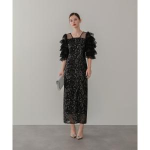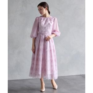 ドレス オーガンジーフラワー刺繍ボリュームスリーブパーティードレス 結婚式 お呼ばれ ドレス 20代 30代