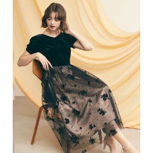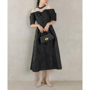ドレス ジャガード 花柄 チュール オフショル風 Aライン ワンピース ドレス パーティー ドレス 結婚式 お呼ばれ オケージョン