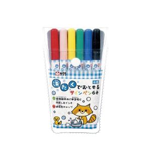 (まとめ) サクラクレパス 洗たくでおとせるサインペン6色 6色セット(1.0mm) MK-S6 くろ あか あお みどり きいろ うすだいだいいろ〔×5セット〕