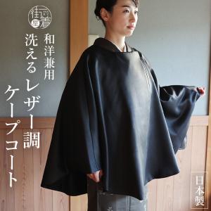 洗える レザー調 ケープ コート ブラック 黒色 レディース 日本製 ポンチョ カジュアル お洒落 無地 防寒 羽織 秋 冬 春 合皮 フェイクレザー ポリエステル
