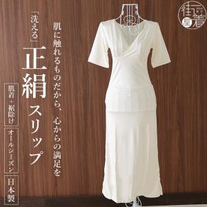 日本製 洗える 正絹 シルク スリップ 肌着 和装スリップ 絹100% M L Vネック 単衣 袷 春 夏 秋 冬 下着 着物 きもの インナー 肌襦袢 長襦袢 ワンピース