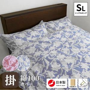 掛ふとんカバー 日本製 綿100% シングルロング CAMEL PALMS モニカ 花柄 着脱簡単テープ付 スナップボタン付き スヤマ おしゃれ 洗える 丸洗い可
