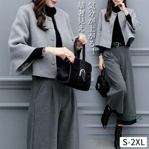 セットアップ パンツスーツ 2点セット ジャケット ガウチョパンツ ワイドパンツ フォーマルスーツ ゆったり レディース ラシャ 長袖 無地 フォーマル 入学式