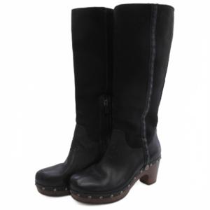 アグ オーストラリア UGG australia スエード ロング ブーツ サイドジップ レザー ブラック 25cm レディース