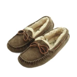 アグ オーストラリア UGG australia モカシン スリッポン スエード ムートン リボン US7 24cm 茶色 ブラウン N5612