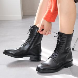 ブーツ レディース 本革 ミドルブーツ レースアップ 履きやすい 歩きやすい ポインターamiamiアミアミ