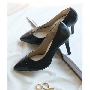 パンプス 異素材モチーフ付ポインテッドトゥパンプス/6センチヒール