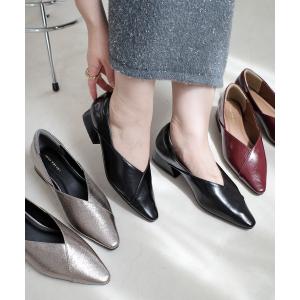 パンプス バブーシュ Vカットスクエアトゥ フラットシューズ レディース 2WAY ルリアンプラス SlV amiami