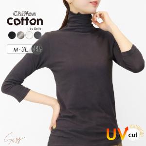 ハイネック レディース 綿 薄手 インナー 7分袖 大きいサイズ UVカット シフォンコットン トップス シアー 春夏 タートル 日焼け防止 *1*2-2t *y3-3t