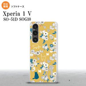 Xperia 1V Xperia 1V スマホケース 背面ケースソフトケース 猫 花 黄 +アルファベット nk-xp15-tp1721i