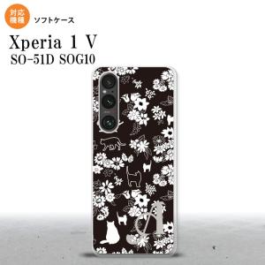 Xperia 1V Xperia 1V スマホケース 背面ケースソフトケース 猫 花 黒 +アルファベット nk-xp15-tp1725i