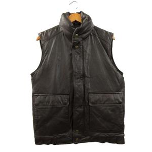 エディーバウアー EDDIE BAUER 80s 黒タグ オールレザー グースダウン ベスト ヴィンテージ ダークブラウン S メンズ