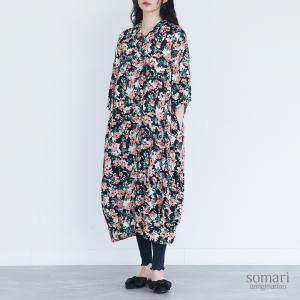 ワンピース 長袖 レディース ドレス ロング丈 花柄 チュール ドッキング シャツワンピース ベルト付き 40代 秋 冬「メール便不可」「30」
